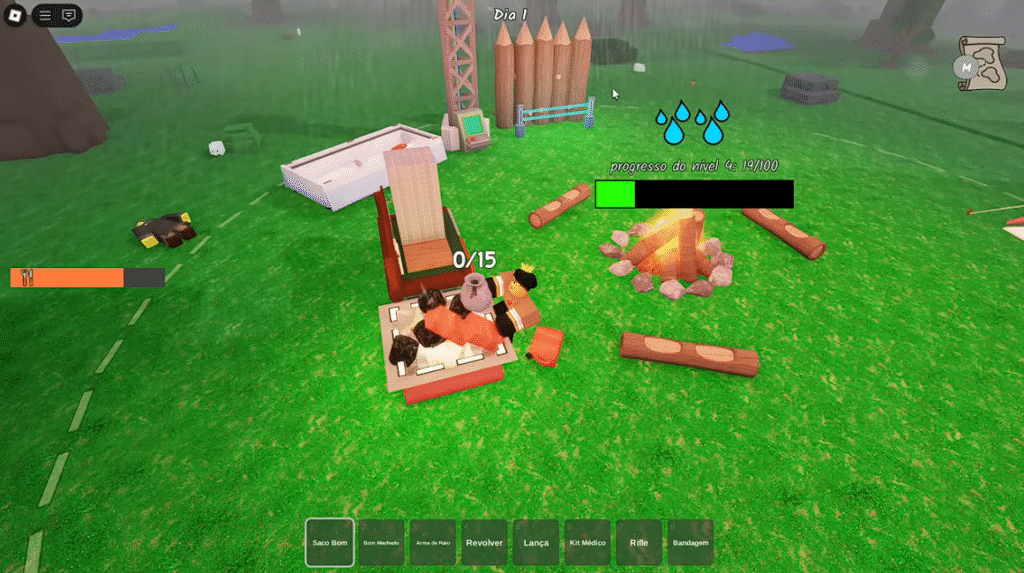 99 Noites na Floresta é um jogo de sobrevivência e crafting no Roblox onde o objetivo principal é sobreviver por 99 dias (e noites) em uma floresta cheia de perigos. Você começa com poucos recursos e precisa coletar materiais, construir abrigos, caçar, cozinhar e se defender de criaturas e outros jogadores.