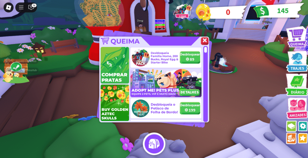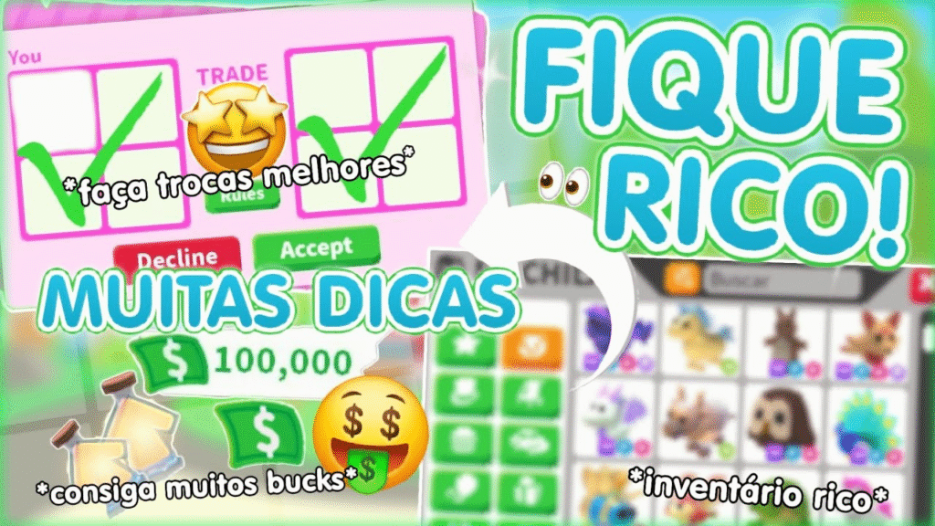 - Coletar e Negociar Pets: A paixão dos jogadores é colecionar pets e itens raros. A negociação é uma parte crucial do jogo, permitindo que você troque pets com outros jogadores para completar sua coleção ou adquirir aqueles que você mais deseja.