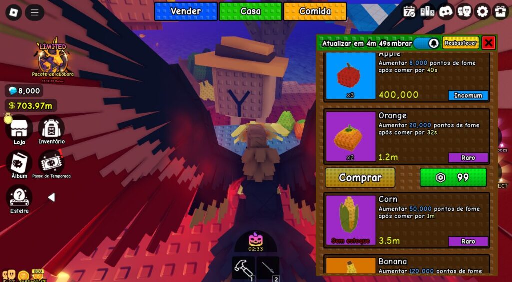 - Estoque de Comida: Em um servidor privado, o estoque de comida para o seu Pet Gigante fica todo disponível apenas para você. Isso facilita a evolução do seu pet, pois você pode comprar o estoque completo sem que outros jogadores esgotem os itens.