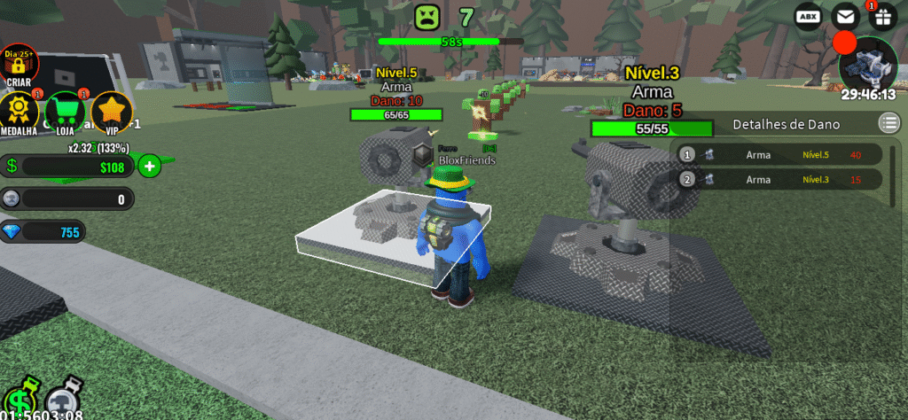 • Personalização: Se você quer se destacar no servidor, pode usar Robux para comprar skins e emotes para suas torres e para o seu avatar.