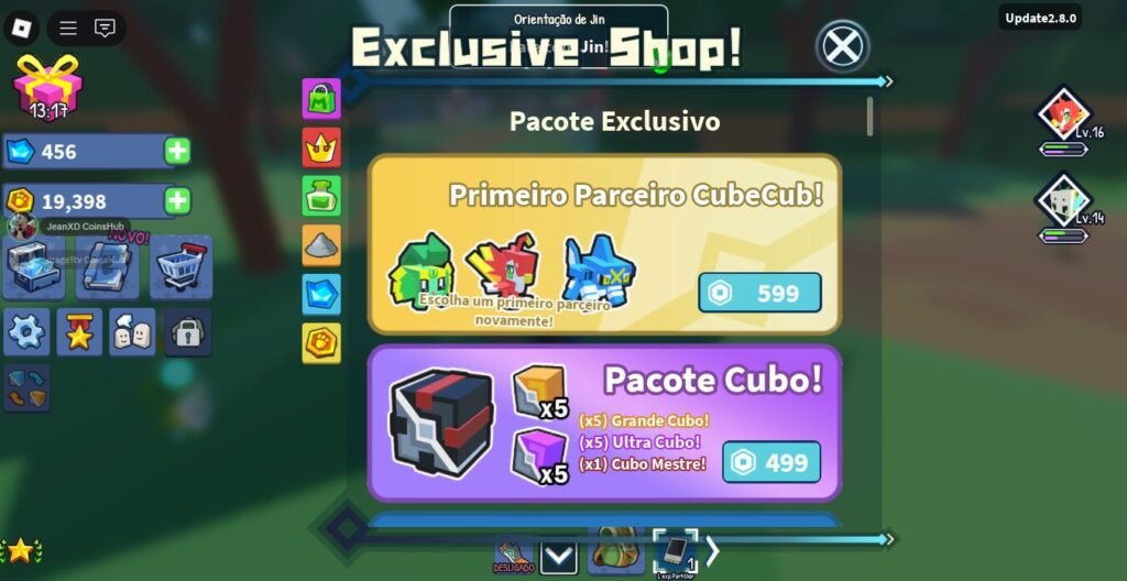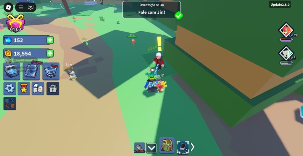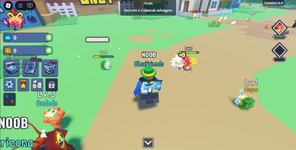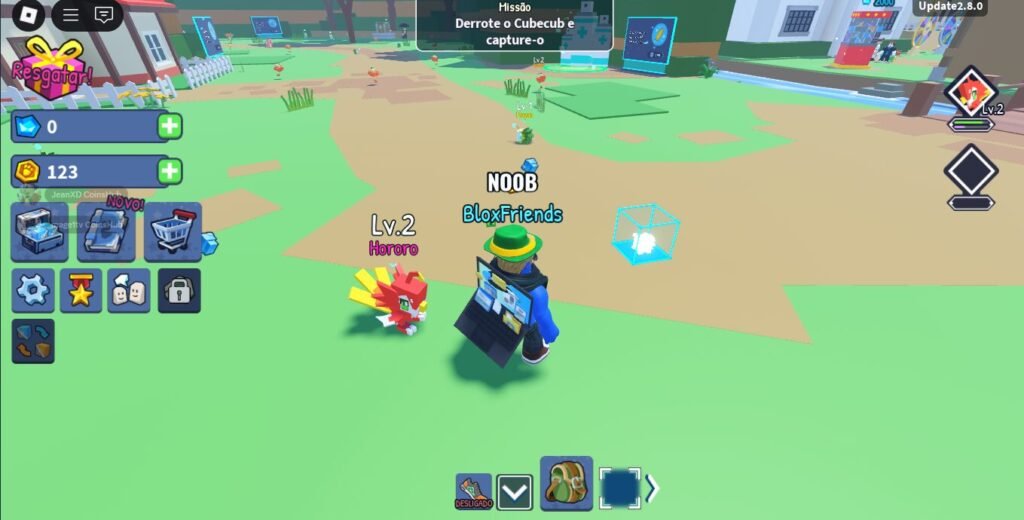 - Códigos Grátis (Codes): Não se esqueça de usar os códigos promocionais liberados pelos desenvolvedores (como “PFS”, “CUBECUB”, “BAZU” ou os encontrados no Discord oficial). Eles fornecem bônus importantes, como boosts de XP, moedas ou até mesmo pets exclusivos.