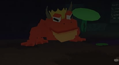 A batalha principal acontece em uma sala grande e circular, onde você enfrentará o Sapo Rei e seus sapos menores.