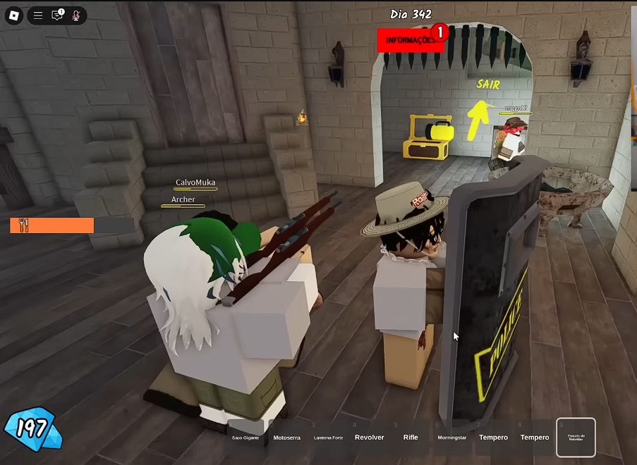 - Táticas de Defesa: Para se defender de inimigos como o antagonista Gilmar e os grupos de “hides”, a equipe usa armadilhas de urso e escudos para proteger a base, além de trabalhar em equipe para se defender de ataques coordenados.