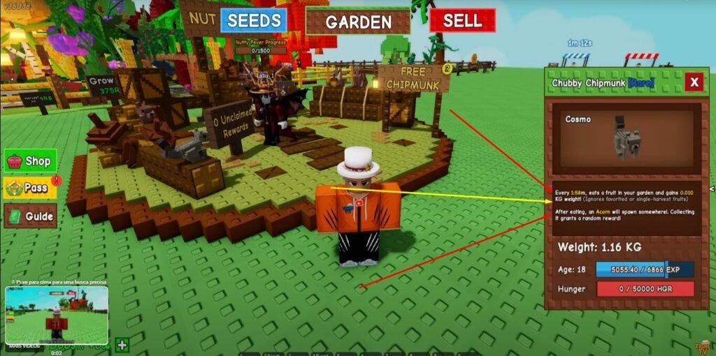 - Foco Total na Reativação: Gaste todas as suas frutas recém-colhidas para reativar o evento assim que o cooldown terminar. Isso garante que seu Esquilo Gordinho esteja sempre crescendo no modo acelerado (30 segundos).