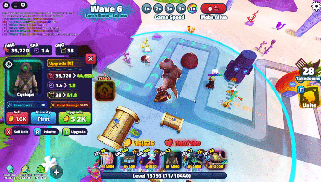 - Unidades Míticas Exclusivas: Algumas unidades, como o Bubbles, o Golfinho, só podem ser obtidas com Robux. Elas são extremamente poderosas e podem virar o jogo a seu favor.
