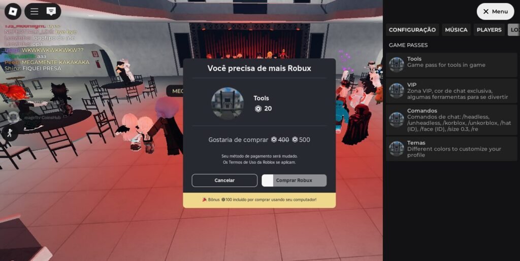 Atenção: Os Robux investidos no Salão de Festas geralmente focam em estética e socialização, não em poder de combate, garantindo que o jogo seja justo para todos.