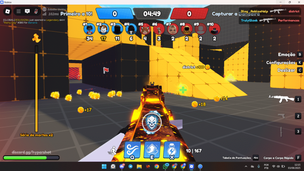 E aí, guerreiro! Já se aventurou no intenso mundo de Hypershot? Qual é o seu modo de jogo favorito e qual arma você acha que é a mais forte? Compartilhe nos comentários suas primeiras impressões, as estratégias que você está usando e suas dicas para a nossa comunidade! Sua experiência ajuda outros jogadores a se tornarem lendas do FPS no Roblox!