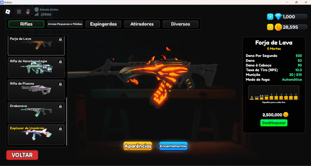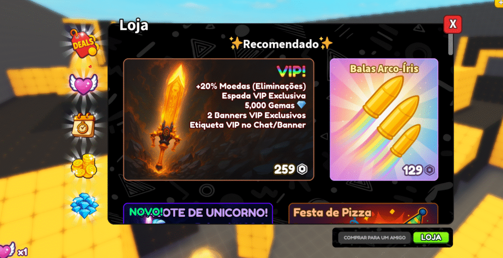 - Desbloqueio de Armas e Skins: Você pode usar Robux para acelerar a aquisição de moedas e gemas, que são usadas para desbloquear novas armas e skins.