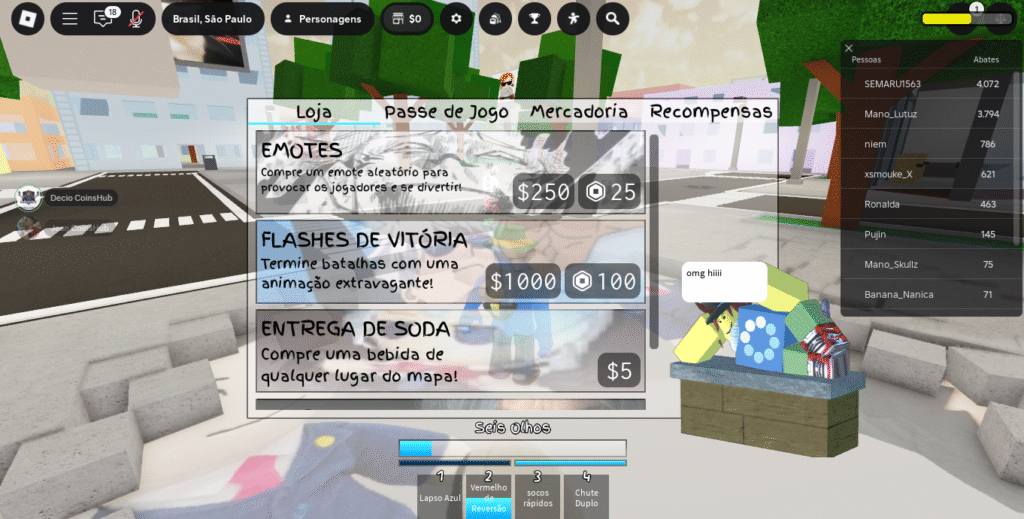 - Poderes e Técnicas Raras: Com Robux, você pode roletar por novas técnicas, aumentando as chances de conseguir as mais raras e poderosas do jogo.