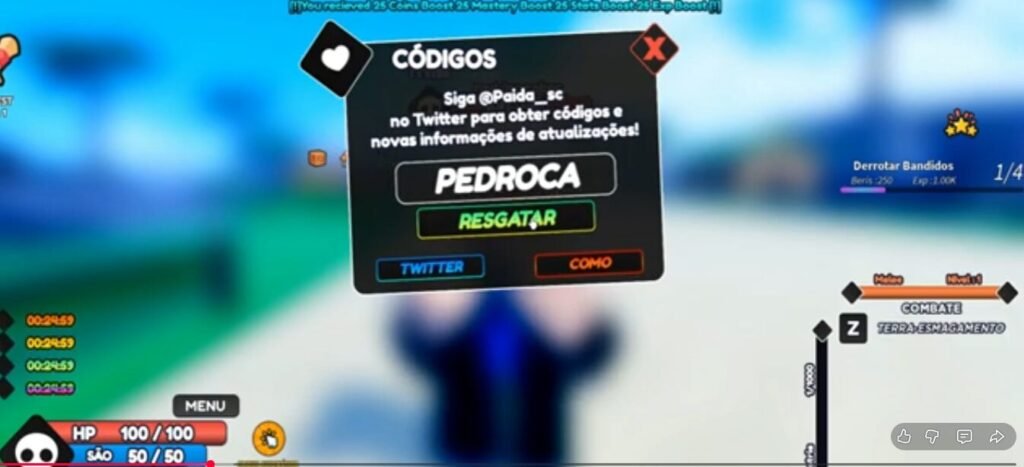 - Códigos (Boosts) são Ouro: Use todos os códigos ativos para conseguir multiplicadores de XP, Beli e Maestria. Isso acelera o jogo drasticamente.