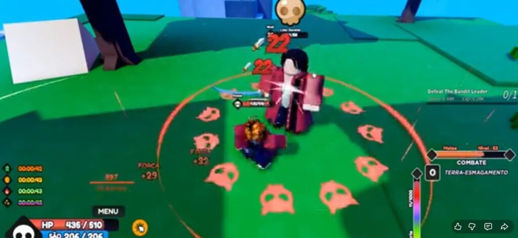 - Foco Total em Bosses: Ignore os NPCs comuns. Comece a missão do Boss da sua ilha e repita-a até que o ganho de XP comece a diminuir drasticamente. Só então avance para a ilha do próximo Boss.