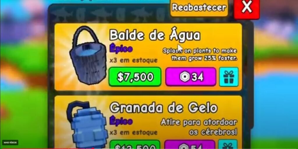 - Bombas de Gelo: Para Brainrots muito resistentes ou chefes, use Bombas de Gelo (Ice Bombs) (compradas no Mercador) para desacelerá-los, dando tempo para suas plantas e seu taco finalizarem o serviço. Por isso, só gaste dinheiro com ferramentas quando já tiver uma boa base de Sunflowers e Dragon Fruits gerando lucro rápido.