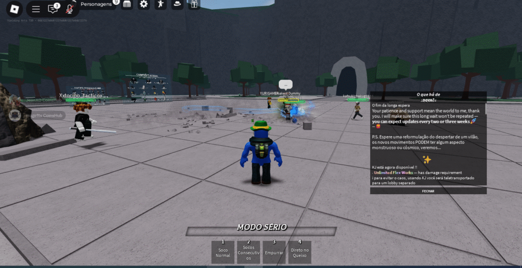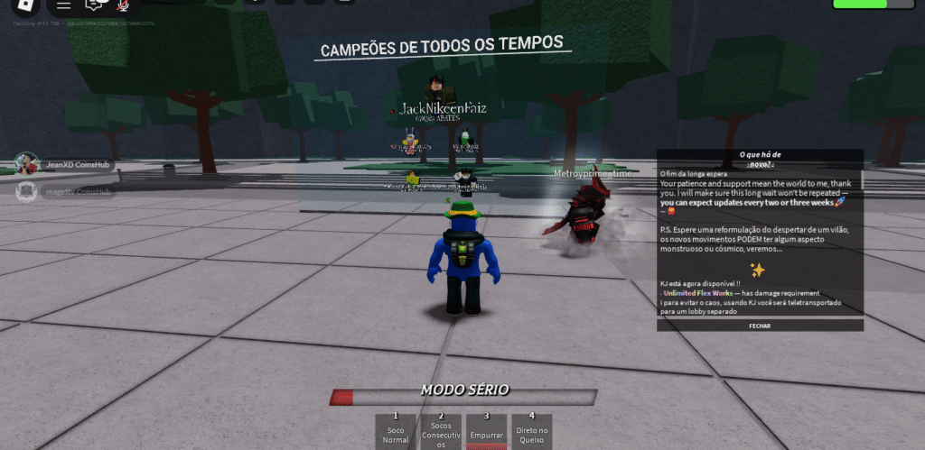 Os Campos de Batalha Mais Fortes é uma experiência de combate no Roblox inspirada no famoso anime e mangá One-Punch Man. Diferente de muitos jogos onde a força é determinada por níveis e estatísticas, aqui o foco é puramente na sua habilidade e técnica. Seu objetivo principal é simples, mas desafiador: sobreviver e se tornar o último a ficar de pé em uma arena de batalha caótica.