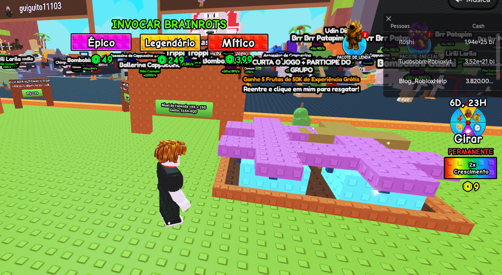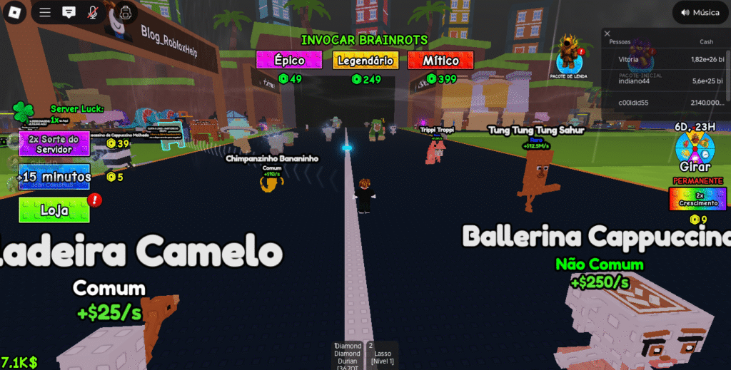 - Participe de Eventos: Fique de olho nos eventos do jogo! Eles geralmente oferecem bônus de XP, itens raros e oportunidades únicas para conseguir Brainrots especiais.