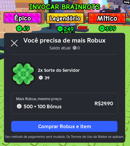 - Acesso a Itens Exclusivos: Adquira Brainrots raros, skins exclusivas ou itens especiais que não podem ser obtidos jogando normalmente.