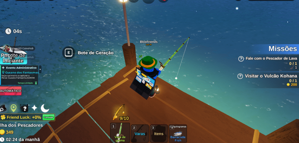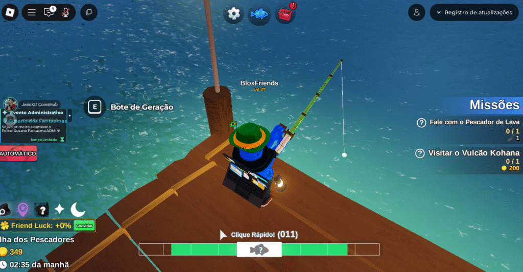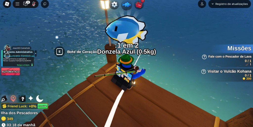 - Compra de equipamentos e boosts: Com Robux, você pode comprar varas, barcos e equipamentos de altíssimo nível logo no início do jogo, dando uma vantagem considerável sobre outros jogadores.