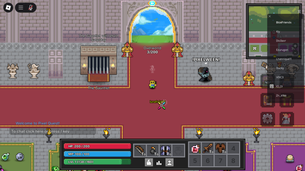 Se você está cansado dos jogos tradicionais 3D do Roblox e busca uma aventura épica em pixel art com adrenalina pura, prepare-se para mergulhar no mundo de [🎃] Pixel Quest!. Este título inovador, desenvolvido por Pixel Quest!, está redefinindo o gênero RPG dentro da plataforma, misturando a exploração de mundo aberto com a frenética jogabilidade de Bullet Hell (Inferno de Balas) e os desafios viciantes dos Roguelikes.