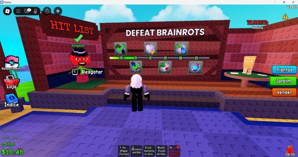 - O Evento Hit List: Fique de olho em eventos como o Hit List, que desafia você a caçar Brainrots específicos. A recompensa final geralmente é uma Planta Godly (Divina), como a poderosa Tomade Torelli (Godly).