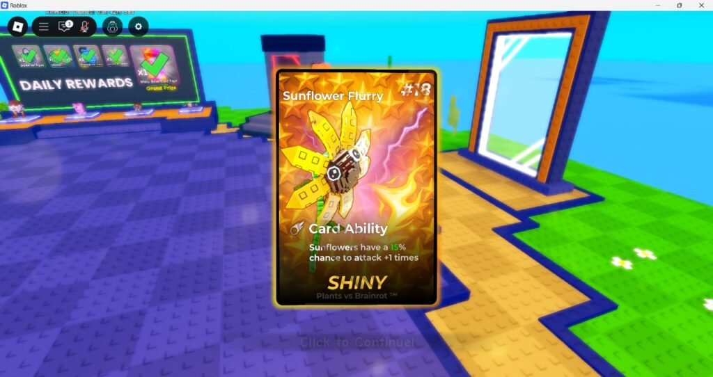 - Recompensas Diárias/Missões: As missões diárias ou de “passe de batalha” obrigam você a coletar ou derrotar Brainrots específicos. Ao completar estas tarefas, você ganha pacotes de cartas comuns e, o mais importante, o cobiçado Shiny Card Pack.