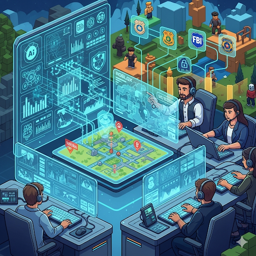 Os sistemas de segurança da Roblox utilizam inteligência artificial (IA) e protocolos de resposta rápida para identificar atividades ilegais ou ameaças à segurança no mundo real. Quando uma ameaça é detectada, a equipe interna investiga e, se necessário, escala o caso para as autoridades competentes.