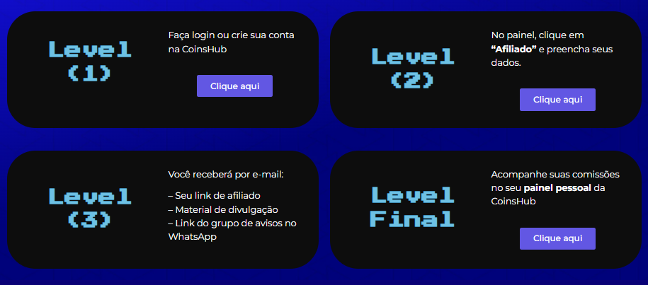 • Level Final: Acompanhe suas comissões no seu painel pessoal da CoinsHub.