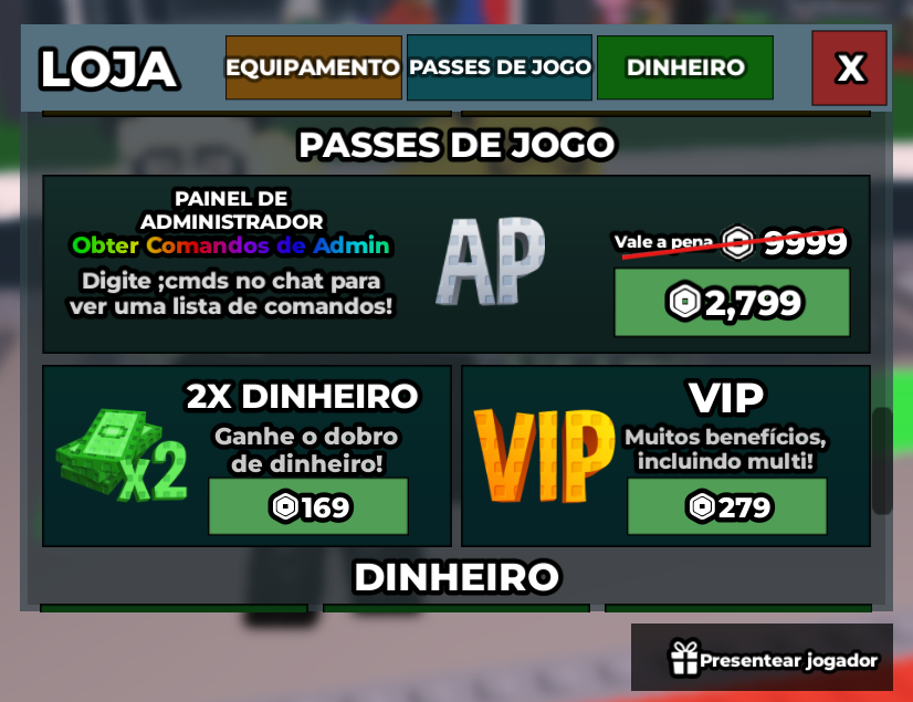 • Comprar Recursos Essenciais: Adquirir moedas do jogo, boosts de experiência ou outros recursos que te ajudam a evoluir seus Brainrots e equipamentos mais rapidamente.