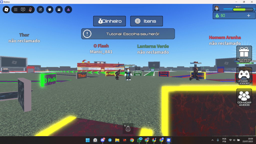 - Escolha seu Herói: Assim que você entra, deve escolher seu super-herói. Cada herói tem habilidades e poderes únicos.