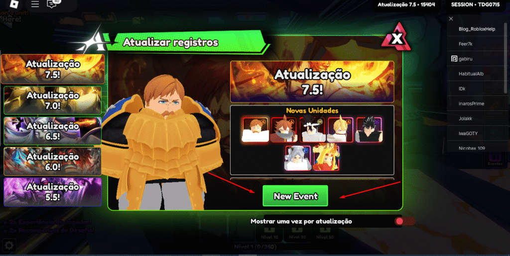 - Códigos: Sempre resgate os códigos de Anime Vanguards que os desenvolvedores lançam. Eles são uma fonte fácil de gemas, rerolls de características e outras recompensas valiosas.