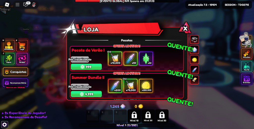 Embora o jogo possa ser jogado sem gastar dinheiro real, o uso de Robux oferece vantagens significativas. Com Robux, é possível comprar benefícios como o VIP Premium, que oferece bônus de recursos e experiência, acelerando drasticamente seu progresso. Outra grande vantagem é a possibilidade de adquirir unidades raras e lendárias nos banners, que geralmente têm uma taxa de drop muito baixa.